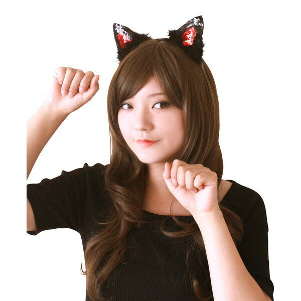 猫耳 フリルカチューシャ 鈴付き チョーカーセット コスチューム用小物 ブラック 約30?